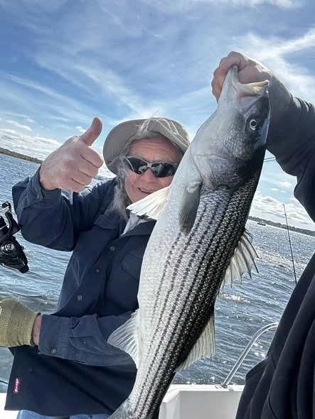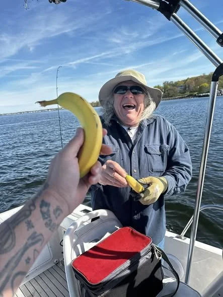 Josh literally had Wayne consume all three bananas immediately and low and behold, Wayne’s next cast caught him his first striped bass of the season.